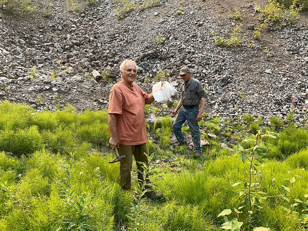 Twelve of 38 rock samples returned values in excess of 1 g/t Ag. At Silver Hoard, a black manganiferous breccia outcrop sample yielded 359 g/t Ag. Upslope and west of the No. 1 mine adit, a partially buried sample of rusty bedrock/sub-crop returned 355 g/t Ag and 4.73% Zn. Sixteen of 18 LDS samples returned values in excess of 1 g/t Ag. Two LDS samples taken below the No. 1 mine adit and below the mine dump yielded 825 g/t Ag and 498 g/t Ag respectively, with both samples displaying highly anomalous base metal values. A soil sampling line was run between the two old workings, with samples taken at 50 metre intervals. Twenty-four of 36 soil samples returned values in excess of 1 g/t Ag. A sample taken below the No. 1 mine returned 251 g/t Ag.
